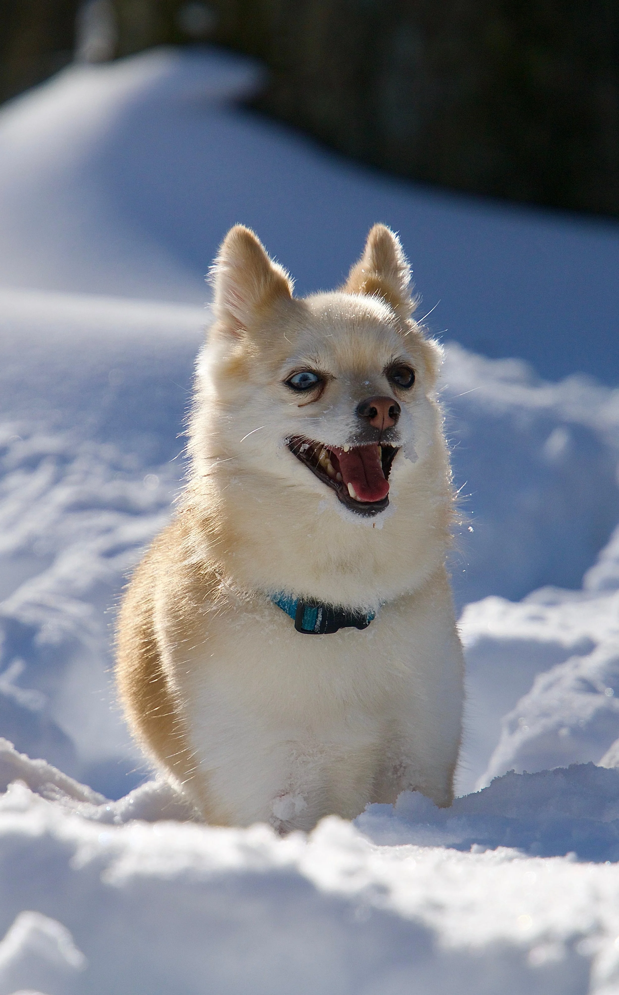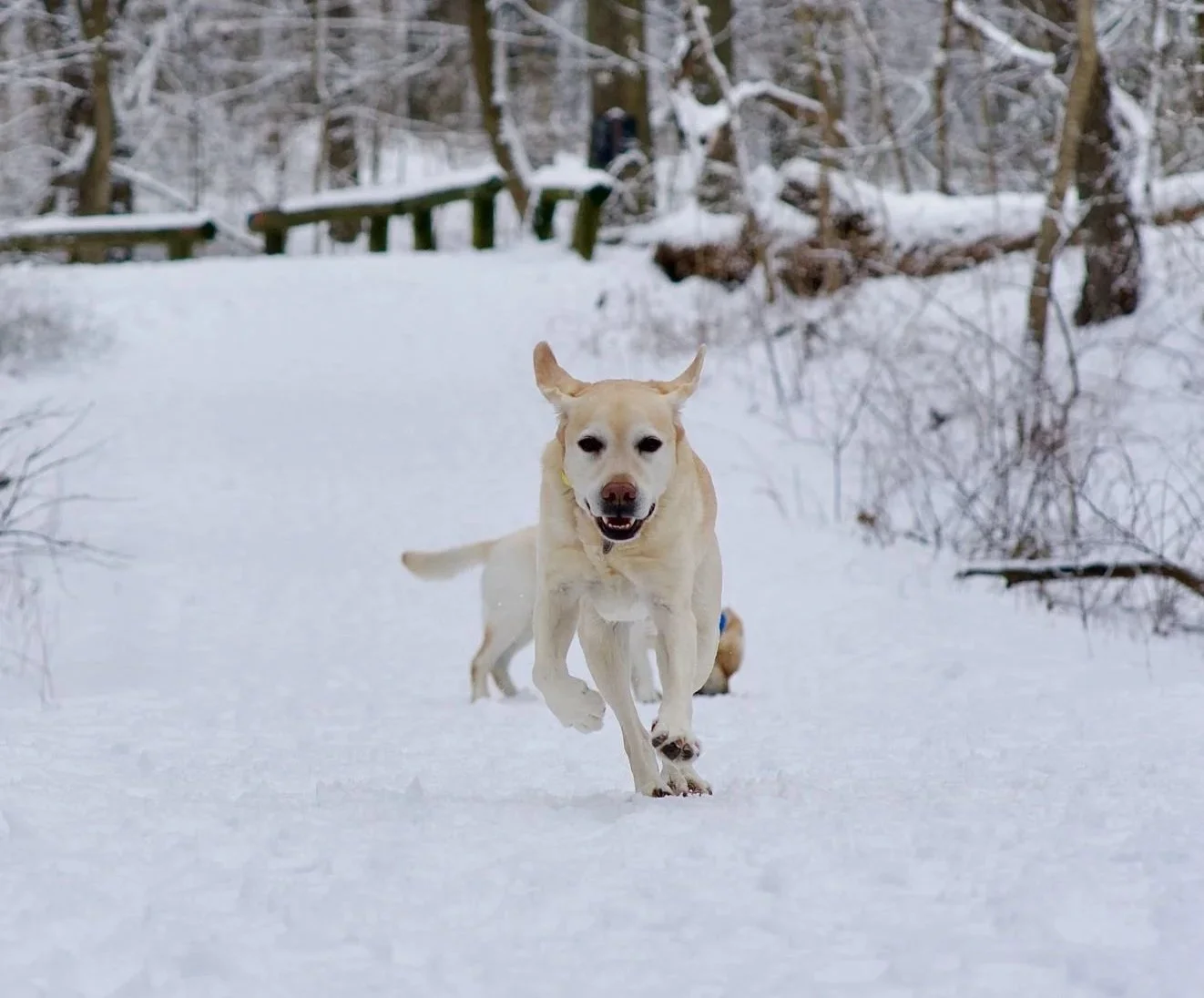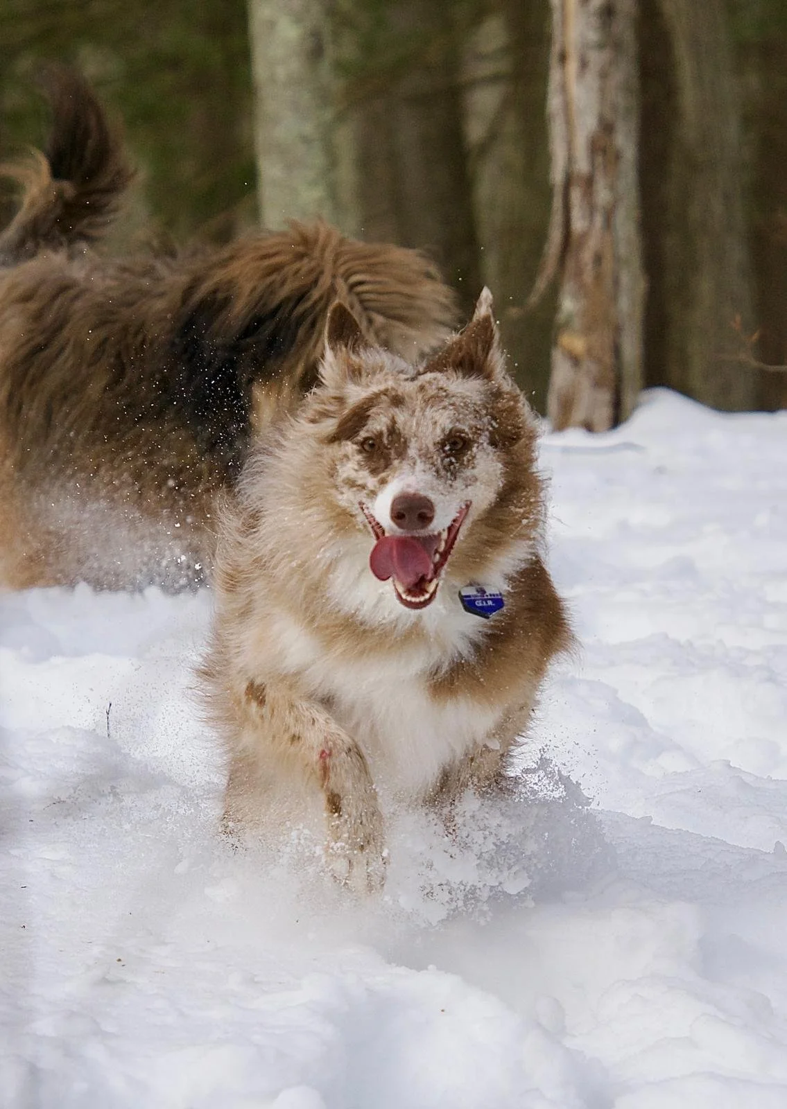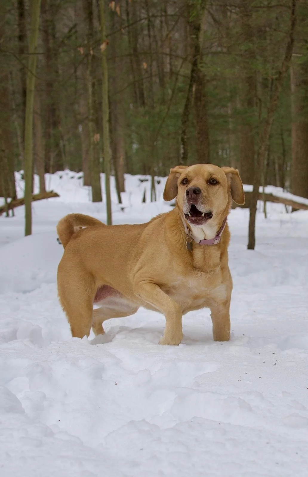 Has been hiking with us for 1 year and lights up the trails every time the weather turns cold. He absolutely loves the snow—bounding through drifts, diving his nose into fresh powder, and turning every winter hike into his own happy snow day.