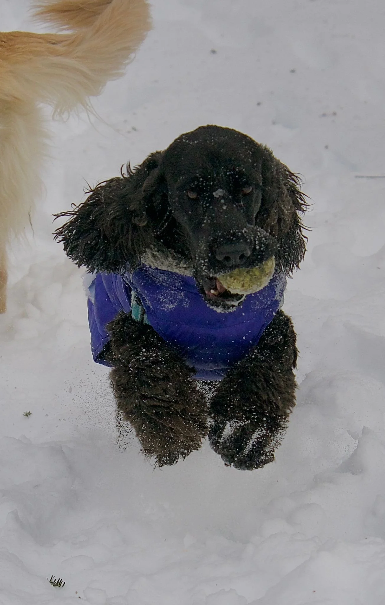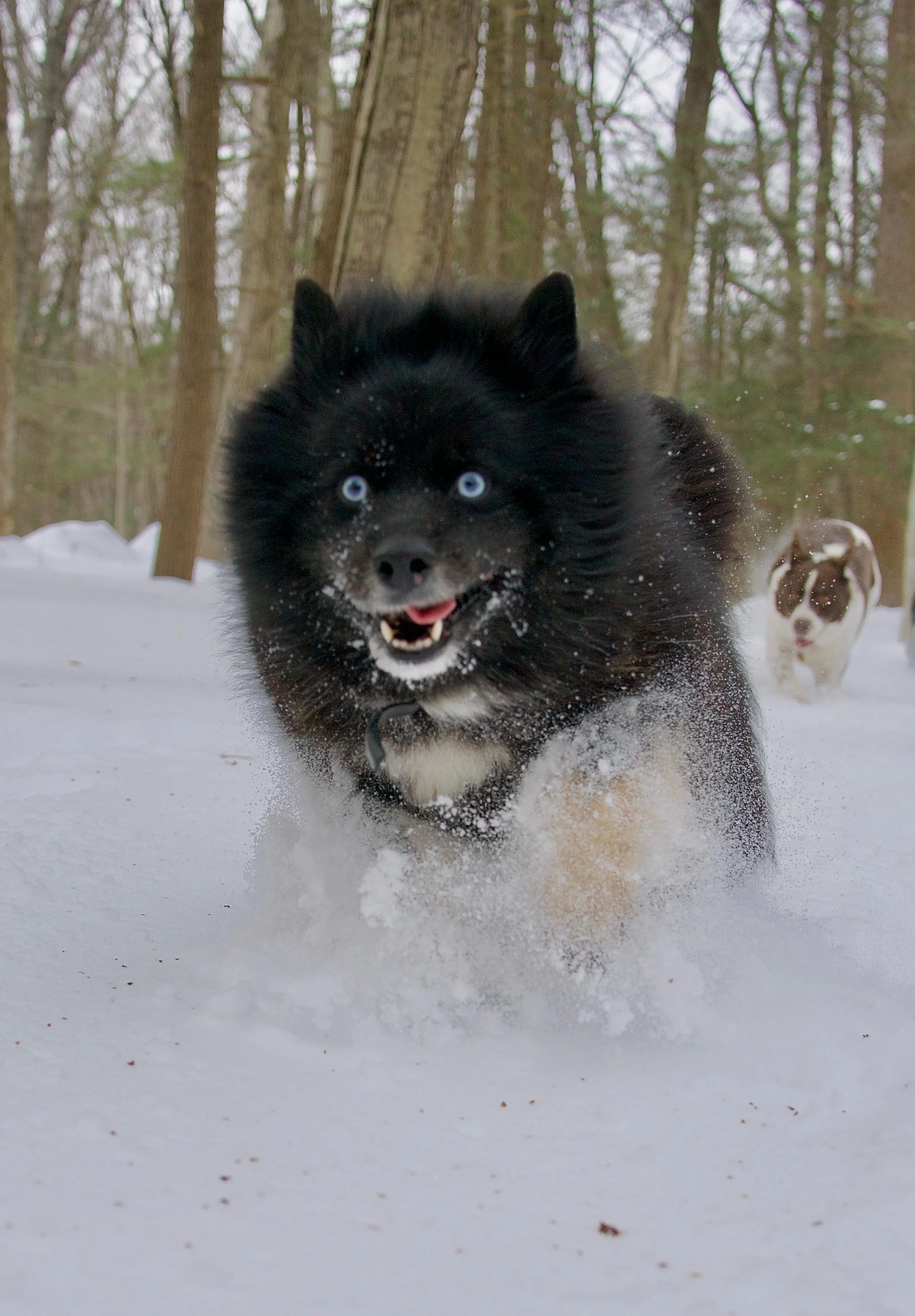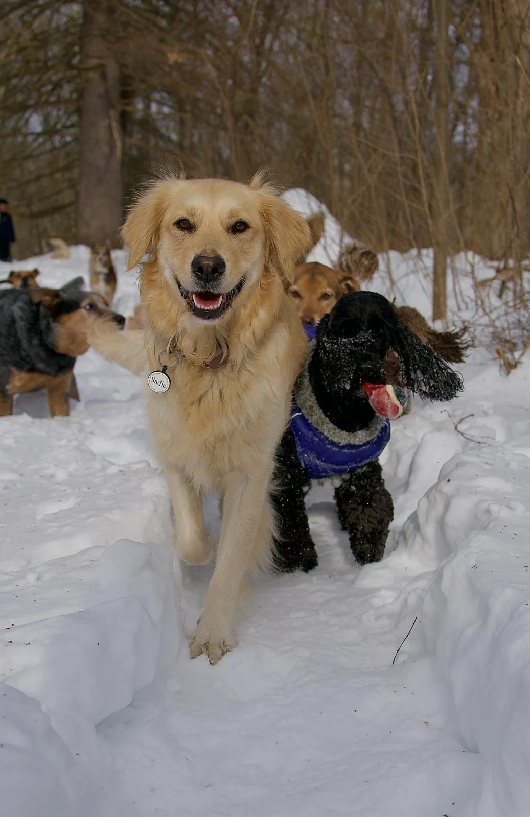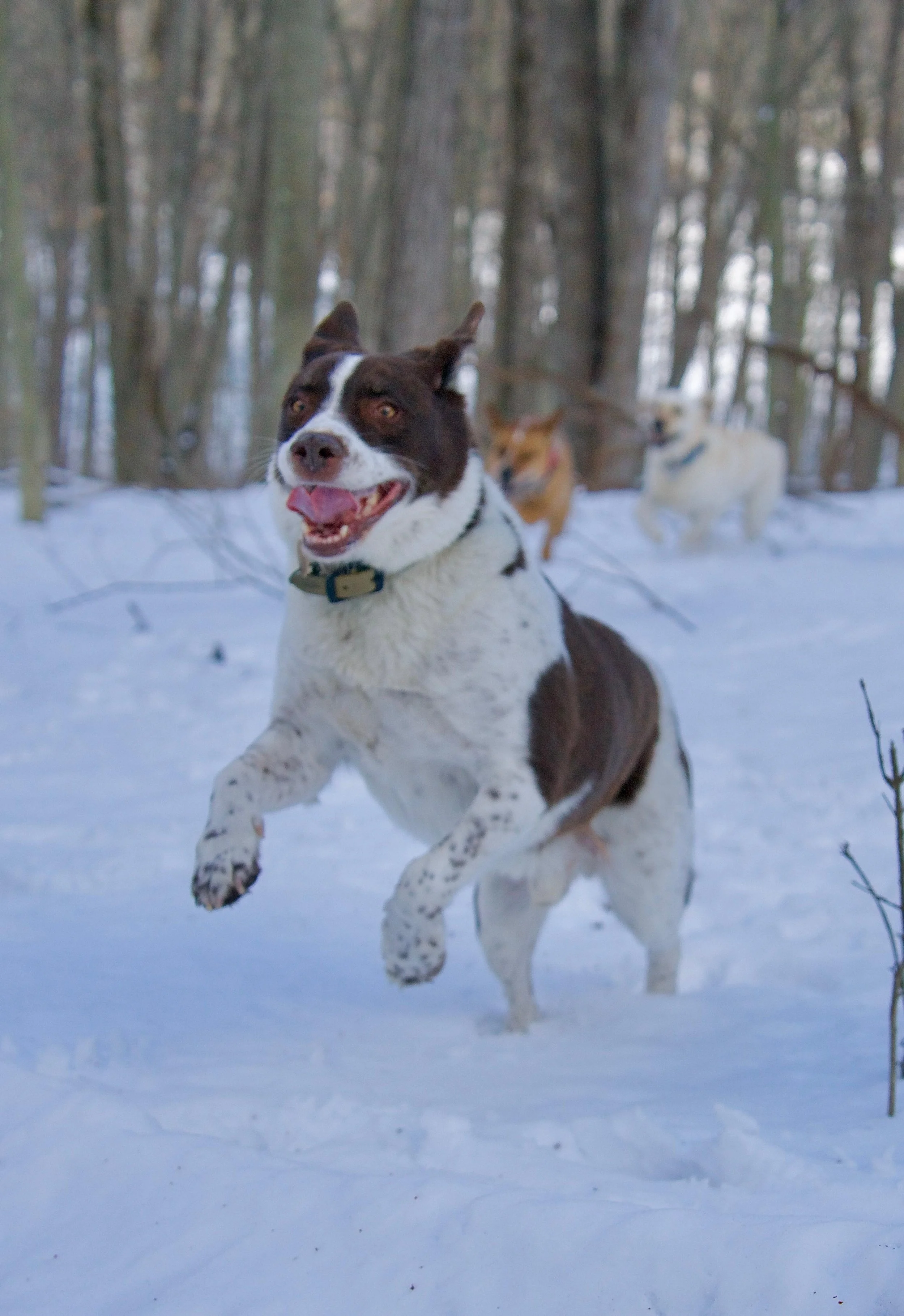 Has been hiking with us for 1 year and lights up the trails every time the weather turns cold. He absolutely loves the snow—bounding through drifts, diving his nose into fresh powder, and turning every winter hike into his own happy snow day.