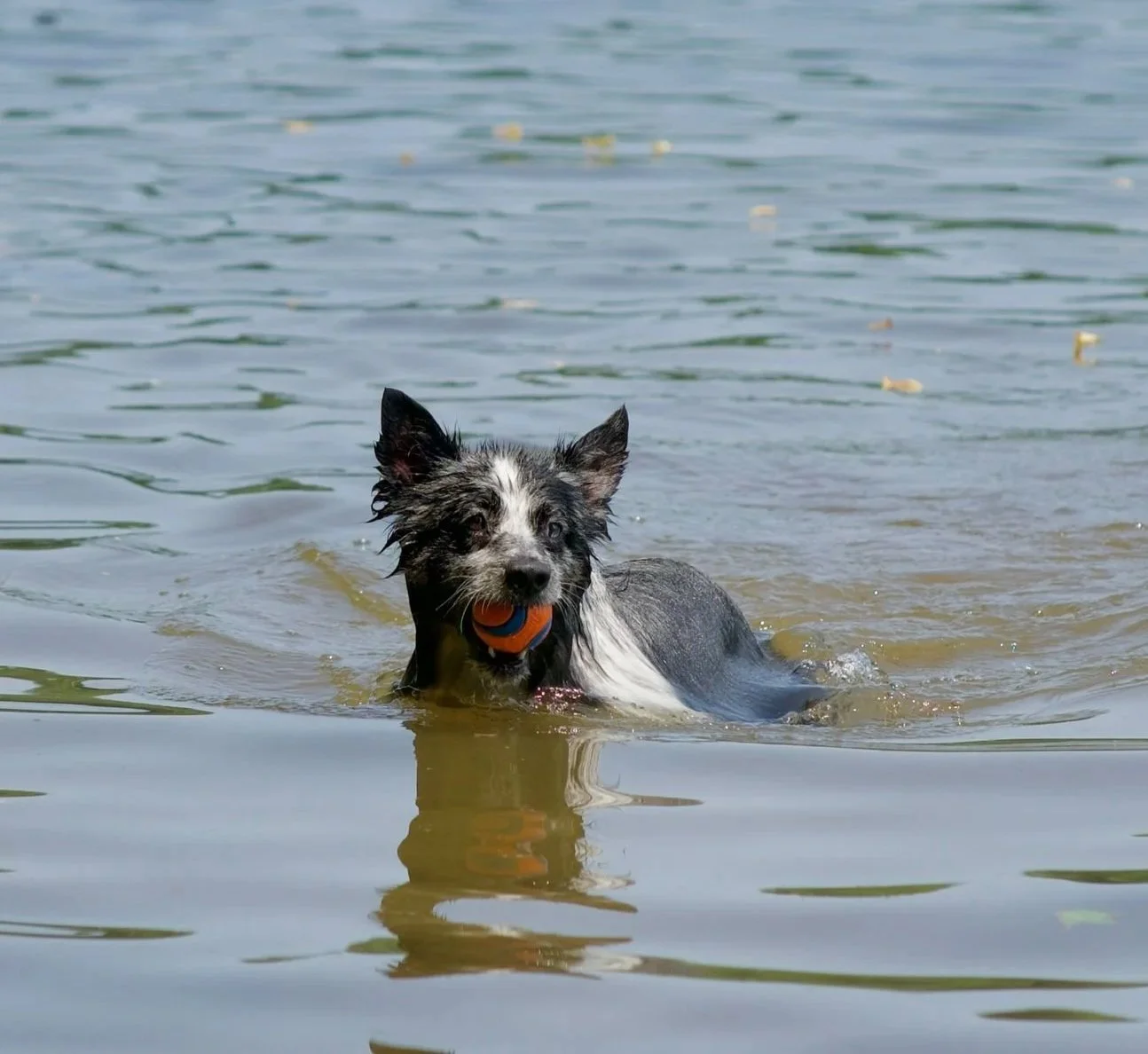 Has been hiking with the team for 7 years and is the undisputed swim champion of the group, always the first one to launch himself into any lake, river, or pond. Powerful, confident, and smooth in the water, he could swim laps around the rest of the pack and never seems to get tired of splashing, diving, and retrieving.