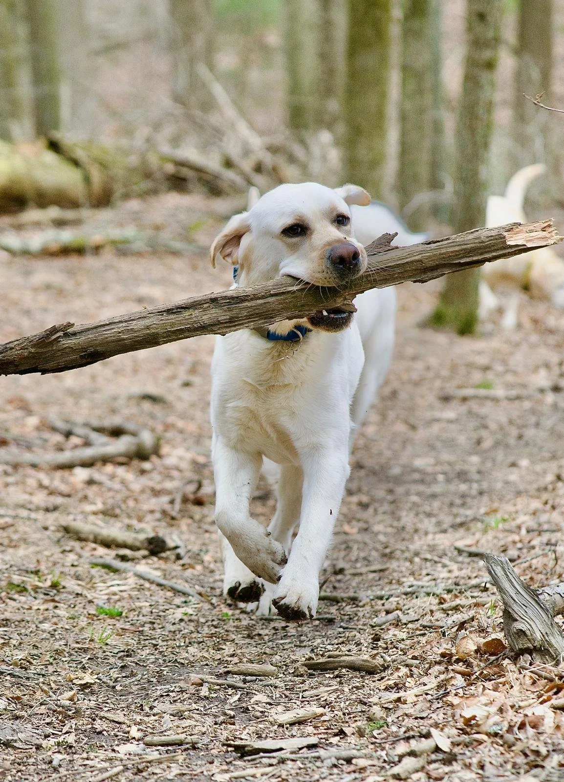 Is endlessly playful, always ready to turn any hike into a game the second a squirrel appears. He loves to run after them (without ever catching them), zigzagging through the trees and keeping the whole pack entertained with his joyful, squirrel-chasing sprints.